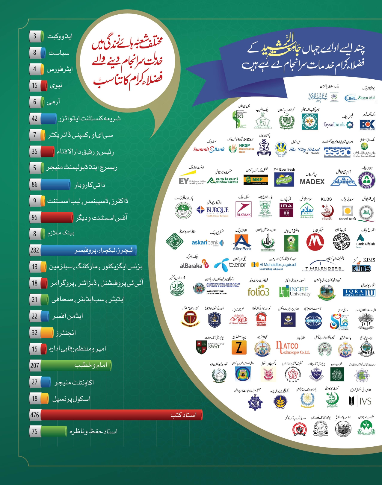 جامعۃ الرشید سے مستفید ہونے والے افراد